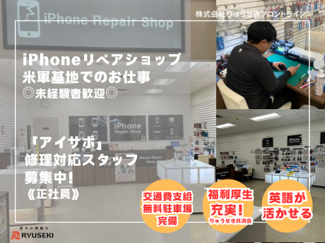 米軍基地内のスマホリペアショップ「アイサポ」にて、来店されたお客様のお困りごとをヒヤリングします。